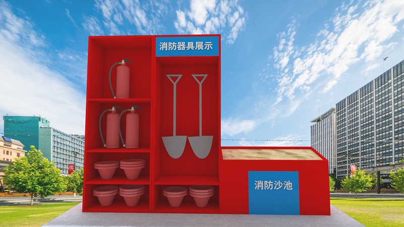1、消防柜展示采用模板拼接。一般尺寸為3500*500*2300mm,可根據現場實際尺寸調節。