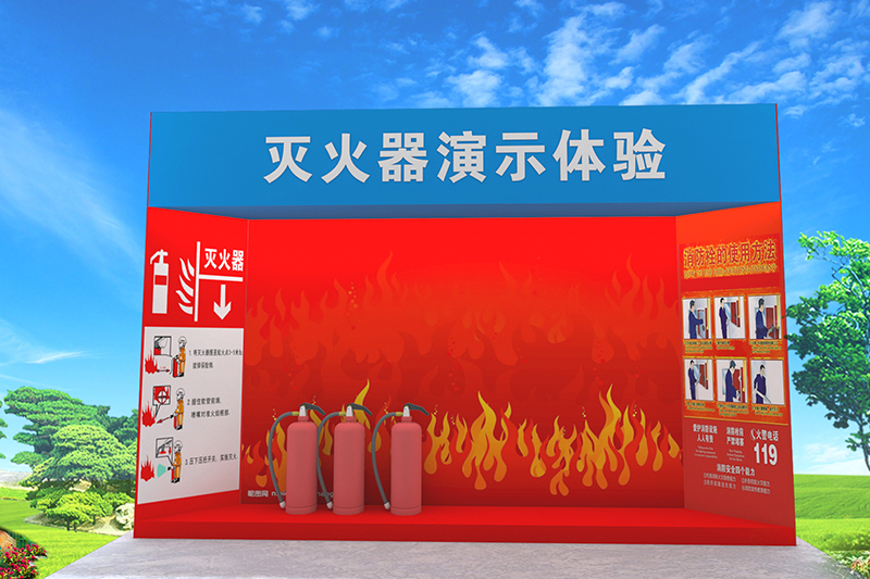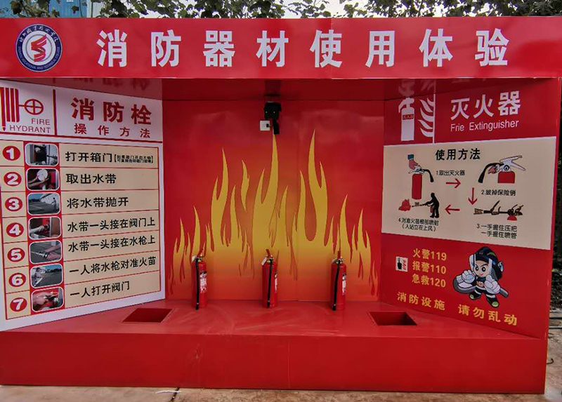 2、體驗(yàn)時(shí)打開遙控開關(guān),模擬火災(zāi)現(xiàn)場濃煙效果。使體驗(yàn)者能夠正確的使用各類滅火器。